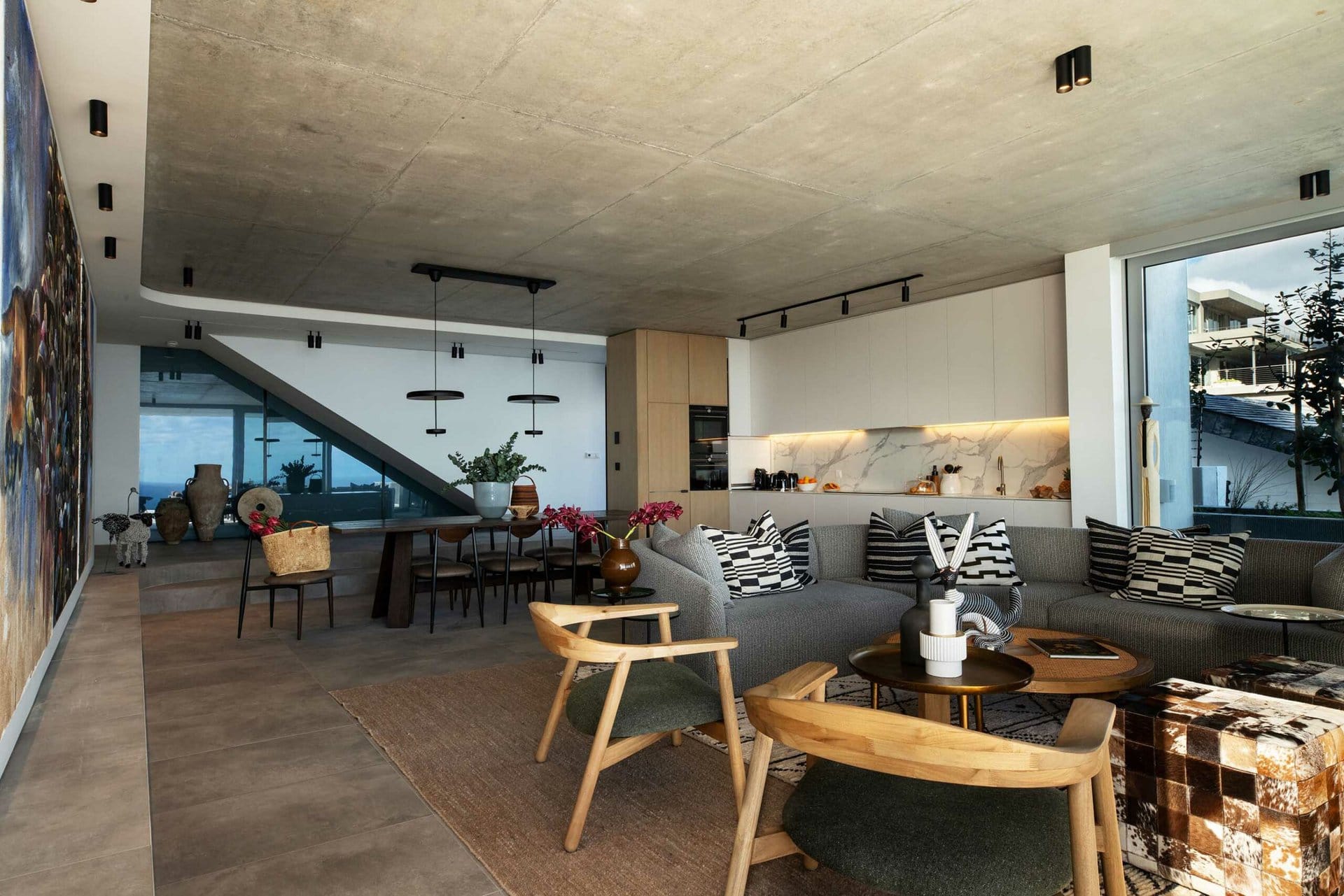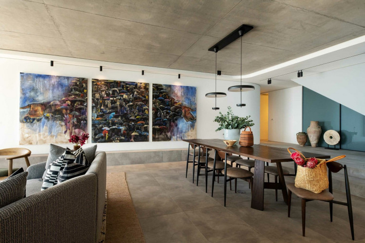 The penthouse features a library and a dedicated work-from-home space. An open-plan formal dining and sitting room and further relaxed sea-facing sitting room.