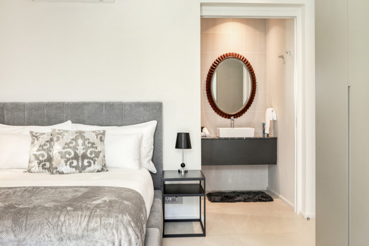 Arezzo boasts two elegant bedrooms in the main house, each furnished with a queen-size bed and featuring its own en-suite bathroom, providing both comfort and privacy.