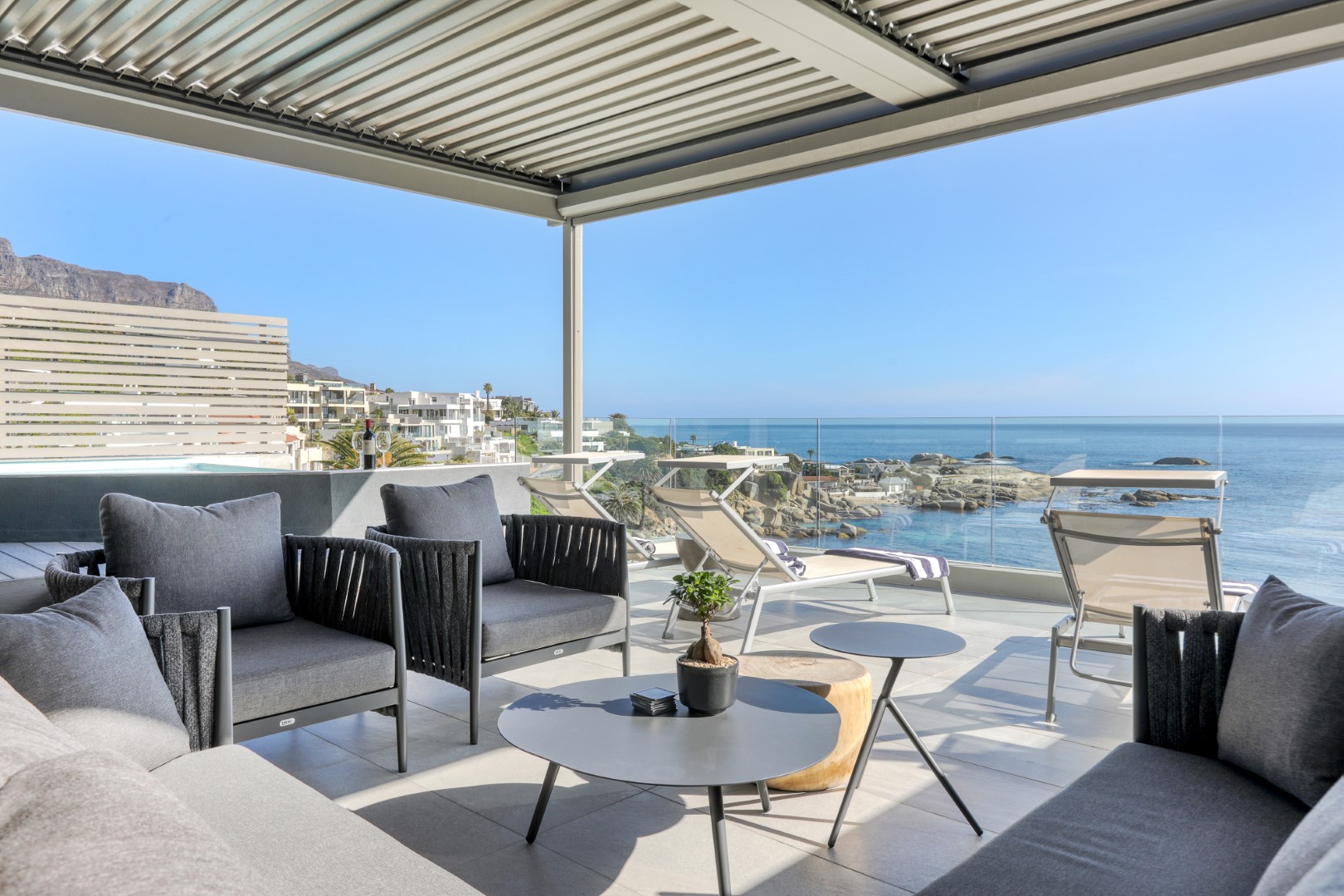 Barley Beach is perfectly positioned to enjoy Cape Town’s cosmopolitan lifestyle. There is a semi private beach directly across the road and the famous Beta Beach is a short walk away. The palm-lined Camps Bay Beach is a short walk away and the four blue flag beaches of Clifton are a short drive away, as well as several excellent restaurants, cafés, and beach bars.