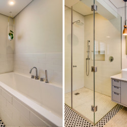 Up the large staircase, you will find 4 bedrooms and 3 bathrooms, all of which have air conditioning.