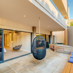 There are 2 bunk beds which can accommodate an additional 4 children (under 16 years). This area has access to the downstairs patio with a plunge pool.