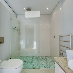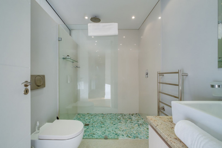 Shared bathroom (with Ocean Room) with shower and heated towel rails