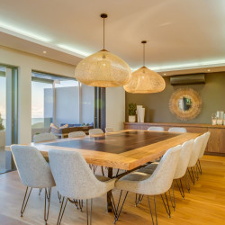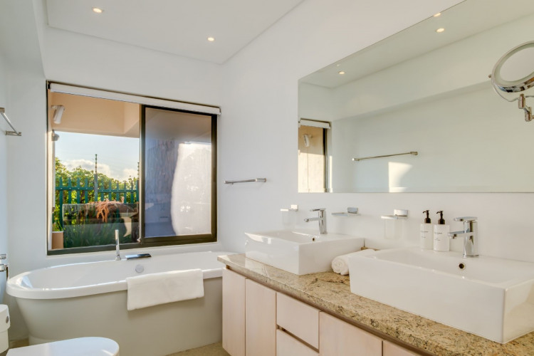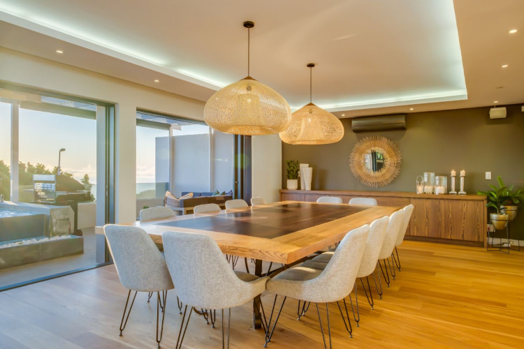 The main entertainment area, with comfortable lounge, expansive dining areas and modern open plan kitchen, is situated on the upper level. This area has access onto a private balcony with lovely views of the Atlantic Ocean.