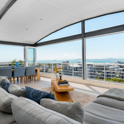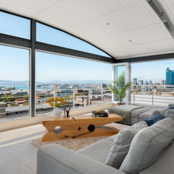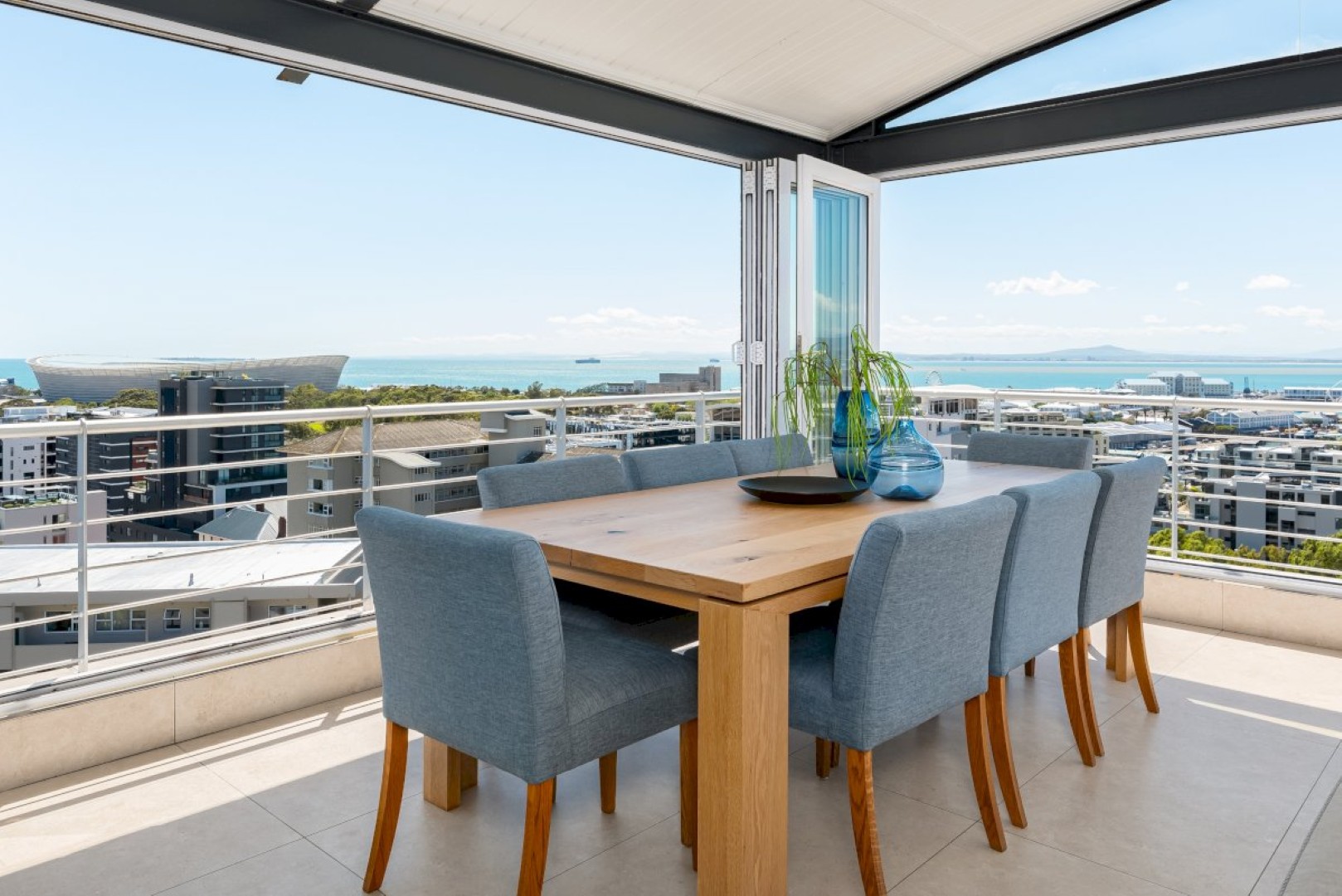 Breathtaking ocean and city views await you from this luxurious 3-bedroom, 2-level Penthouse at Harbour Terrace, GreenPoint, Cape Town.