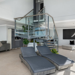 As you step into the large open-plan dining and living area, you’ll be immediately captivated by the floor-to-ceiling glass windows that unveil panoramic views of the ocean and city. Witness the sunsets and city lights like never before – the views are truly spectacular.