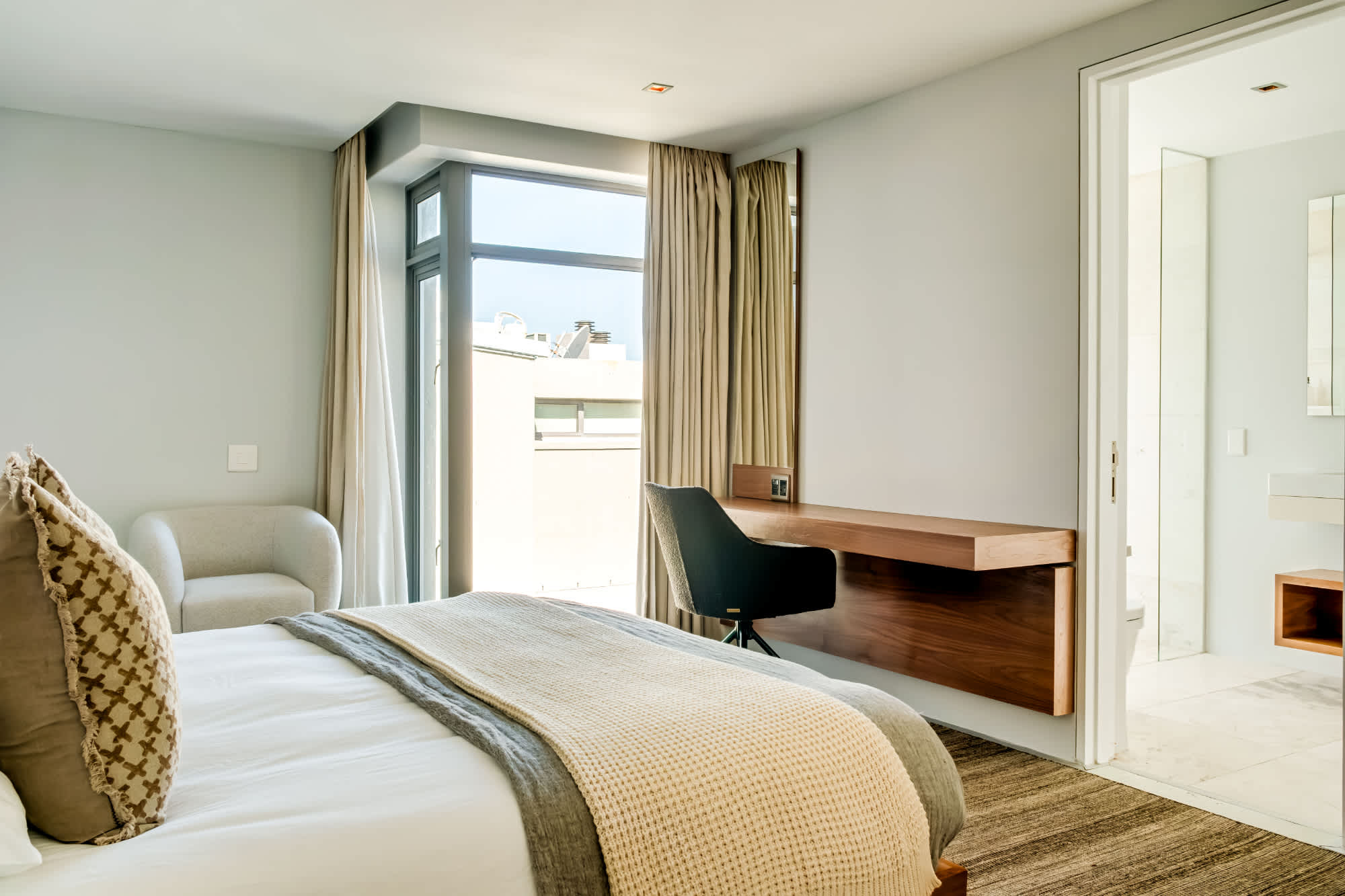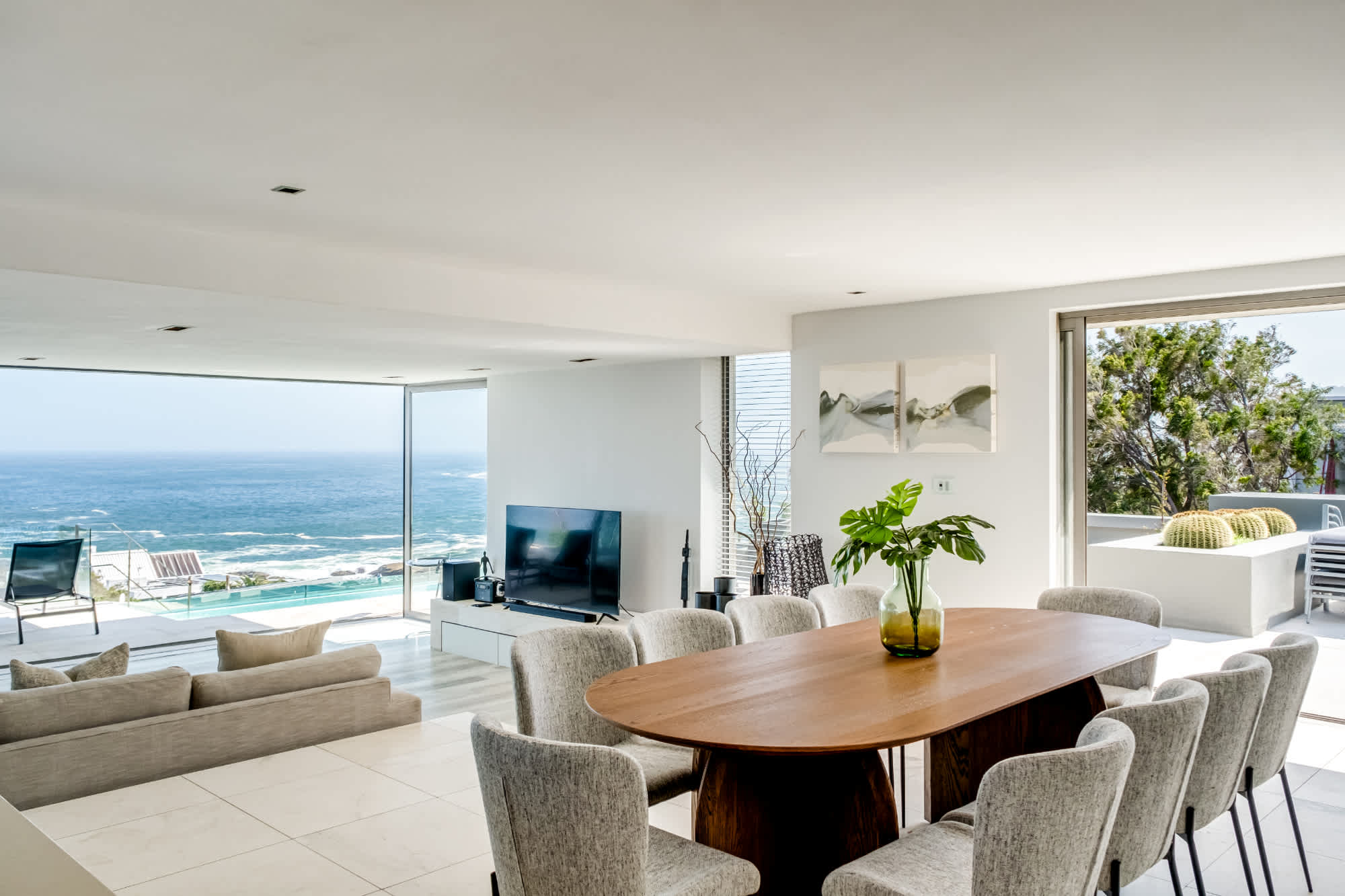 This contemporary haven boasts panoramic sea views and a neutral design palette that exudes sophistication.
