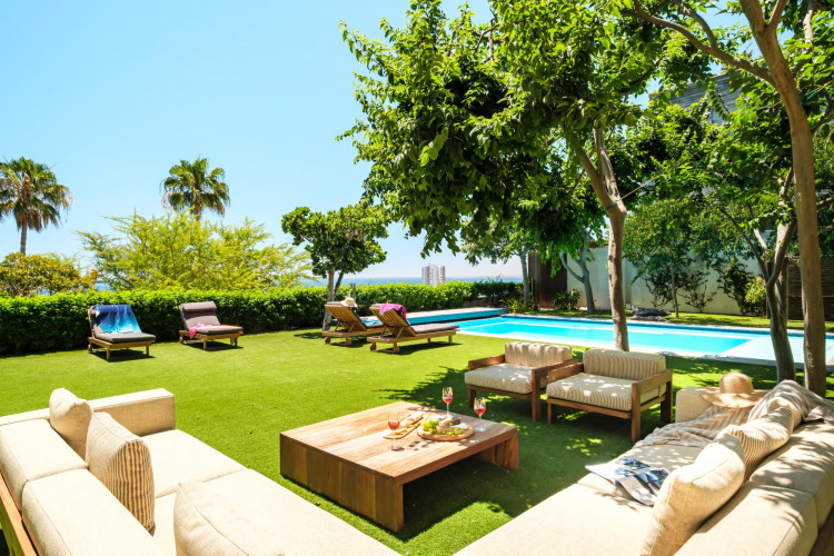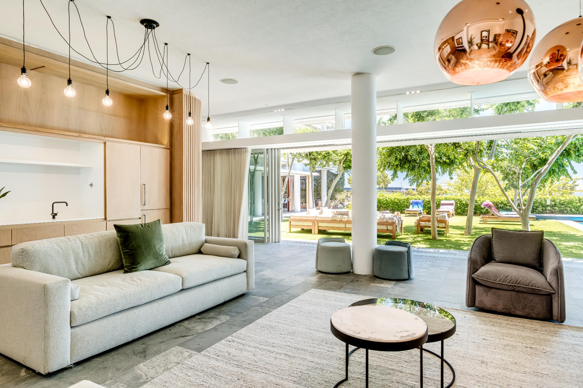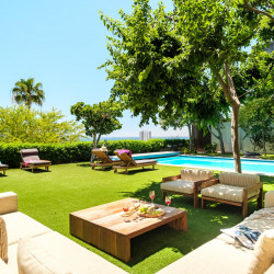 Seating for 8 Aircon Bio fuel fireplace Wet bar with fridge/freezer Access to Garden and Pool area Sea viewsStudy