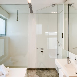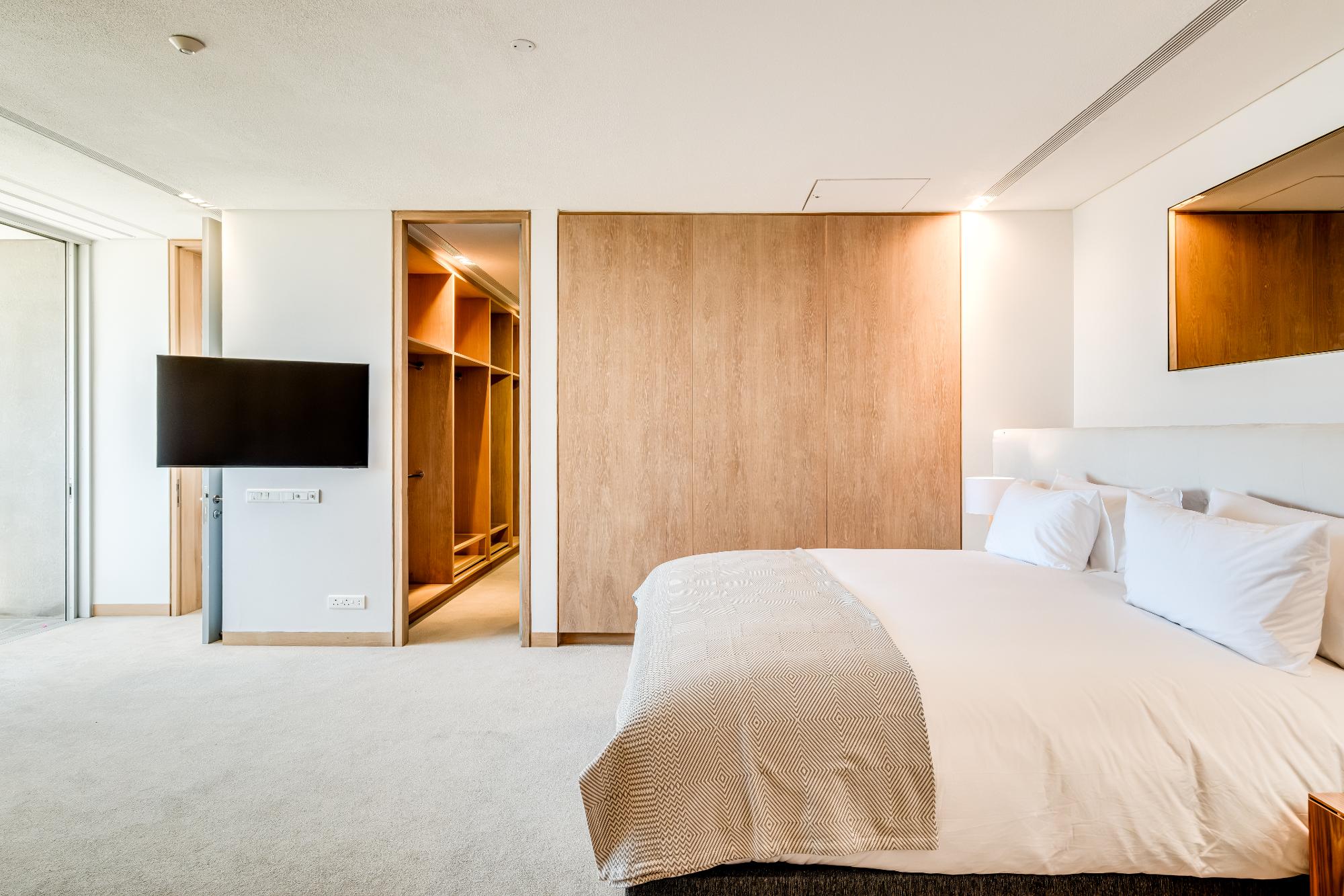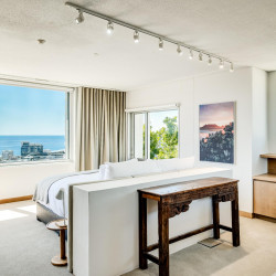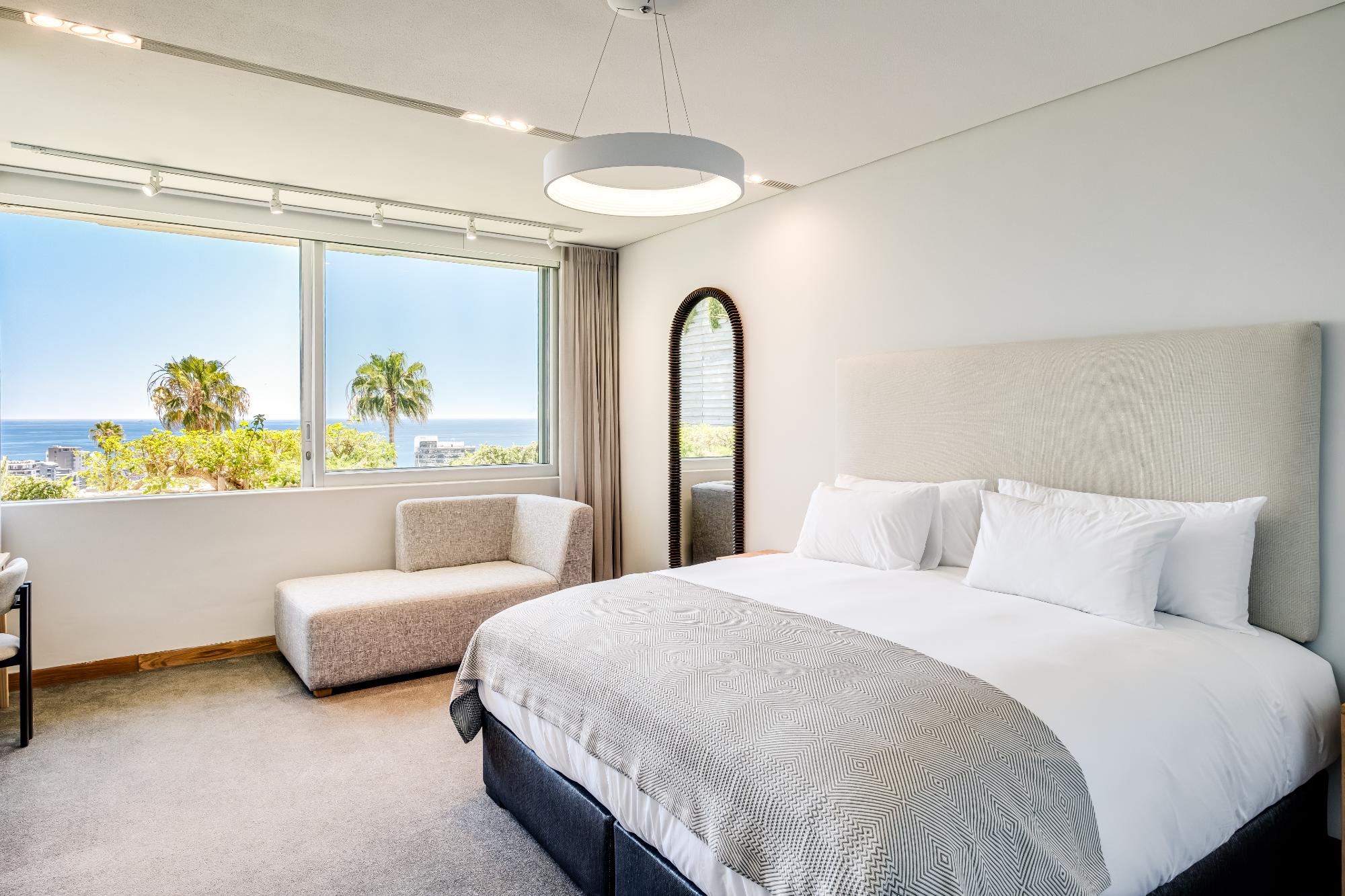 King size bed Aircon Desk Seating for 1 Lounge area with seating for 2 and TV Access to balcony with lounging for 2 Sea and mountain views Dedicated bathroom with shower and single vanitySixth bedroom
