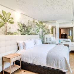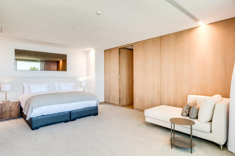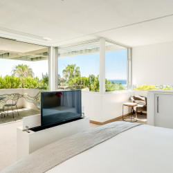 King size bed TV Aircon Bio fuel Fireplace Desk Seating for 1 Dressing room Access to private balcony with seating for 1 and dining for 2 Sea and garden views En-suite bathroom with bath, shower and double vanitySecond bedroom