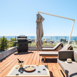 Seating for 12 Dining for 8 Sun loungers Pool Wood barbeque Outdoor shower Sea viewsOutdoor area (Top deck)