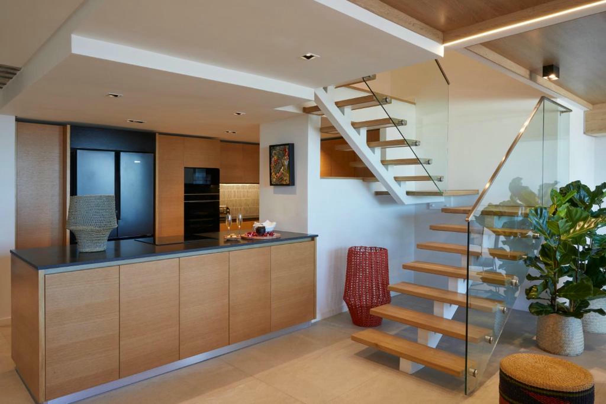 The apartment is spread over 2 levels.