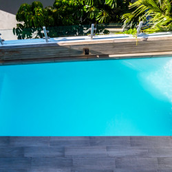 Complete with seating area, it’s an excellent spot for soaking up the sun or enjoying a refreshing dip in the pool.