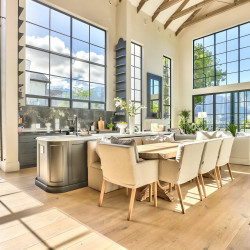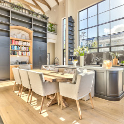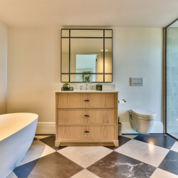 The open plan, classic-contemporary kitchen is bathed in natural light and features all the expected mod cons. A second, smaller kitchen with a bar area is ideal for guests wanting to “do it themselves”, or opt to have a private chef for an evening of food theatre.