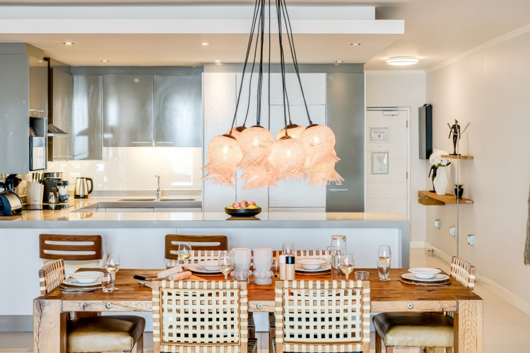 The kitchen is fully equipped, complementing the lounge and dining areas.