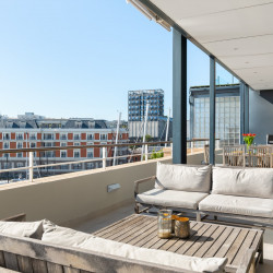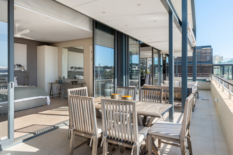 The Penthouse boasts plentiful open plan, light living spaces making the most of this decadent residence. The panoramic wrap-around patio, complete with a splash pool, provides endless views for you to admire – whether it be a peaceful sunrise or spectacular sunset. Your security is paramount with direct lift access offering you exclusive safety and privacy! Welcome to paradise in Cape Town!