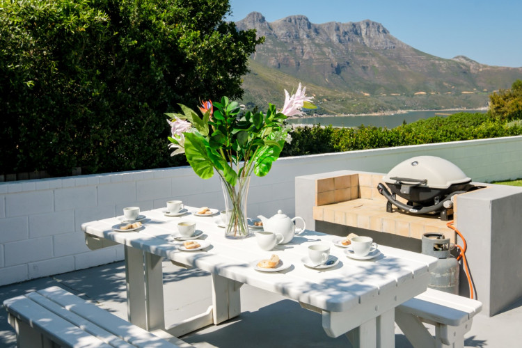 Outside, the expansive deck is perfect for al fresco dining with a gas BBQ, or simply relaxing on sun loungers while savoring the panoramic mountain and sea views.